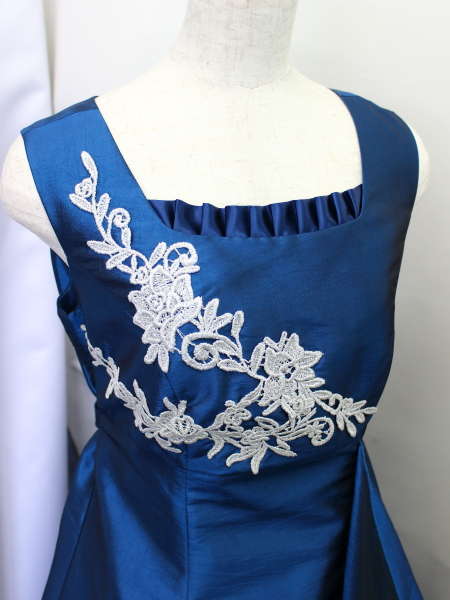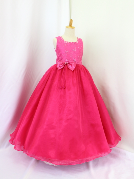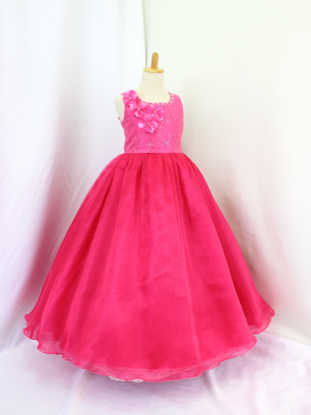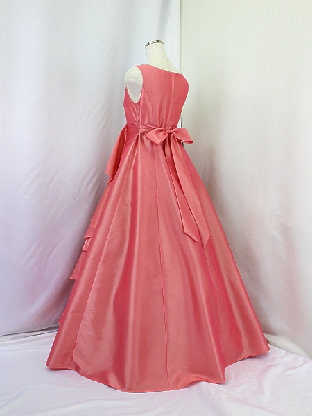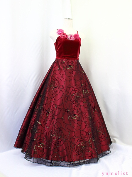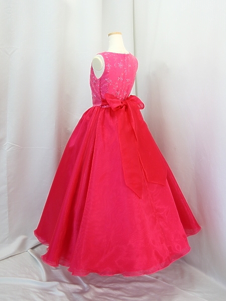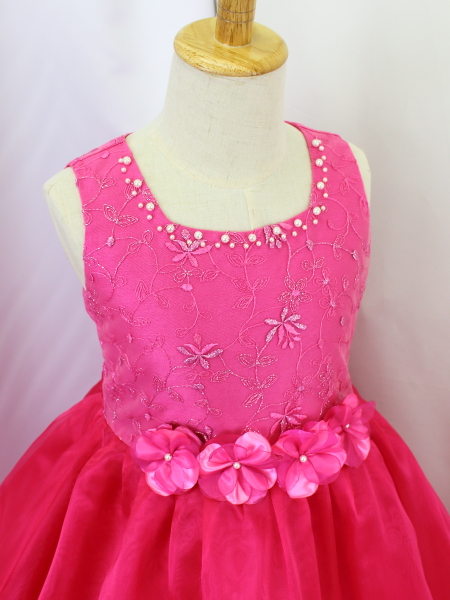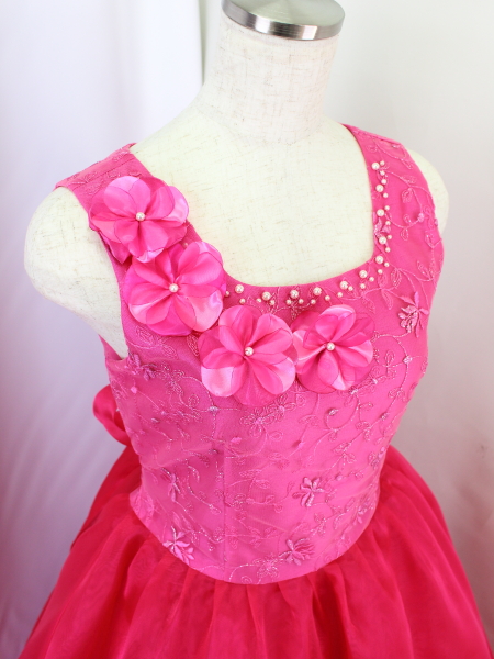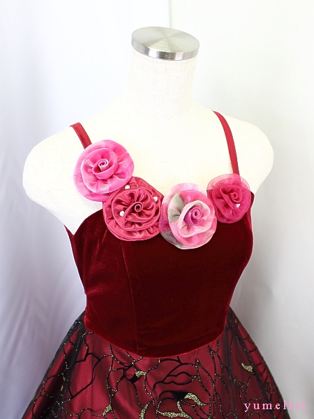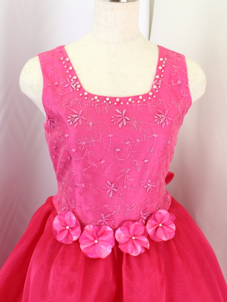 身ごろはローズピンクのチュール地にコード刺繍レース(花模様)。