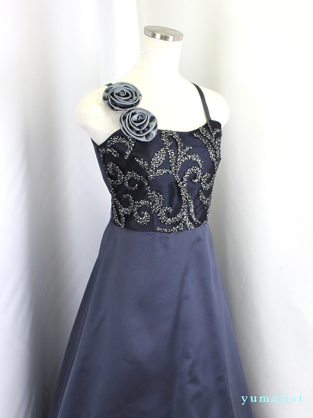 写真撮影には別途パニエを使用しております。肩のコサージュは安全ピンどめです。