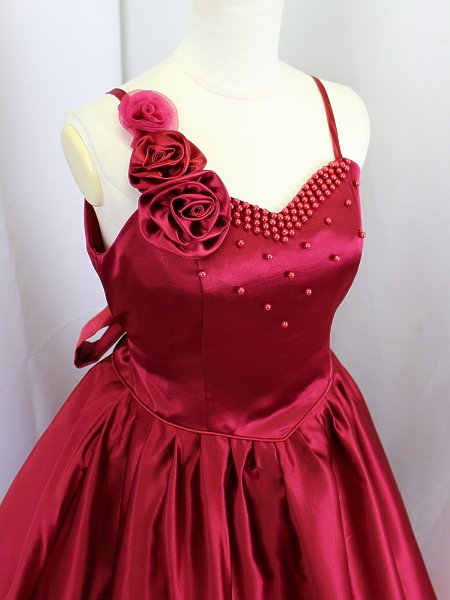 上半身は黒のベルベット、スカートはワイン色のタフタ。